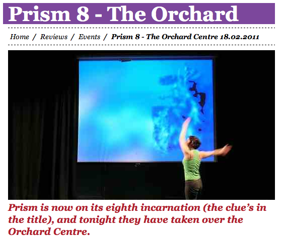 Tonight, the opening performance is by Kate Sicchio, a choreographer and lecturer living in Sheffield and working in the field of live video and dance. In a packed room she takes us through her performance entitled ‘Nayra mara’. She dances in front of an image projected on an entire wall, on which she both casts a shadow and which also responds to her movement.